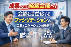 本学には、経営層から「会議を活性化させたい」「意思決定のスピードと質を高めたい」という相談も数多く寄せられます。今回は、成果が出る経営会議を実現するためのファシリテーションと話し方の基本原則を、実践的に解説します。